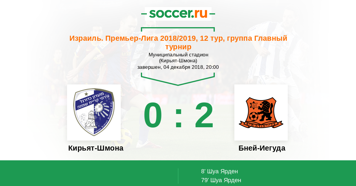 Протокол матча Кирьят-Шмона против Бней-Иегуда