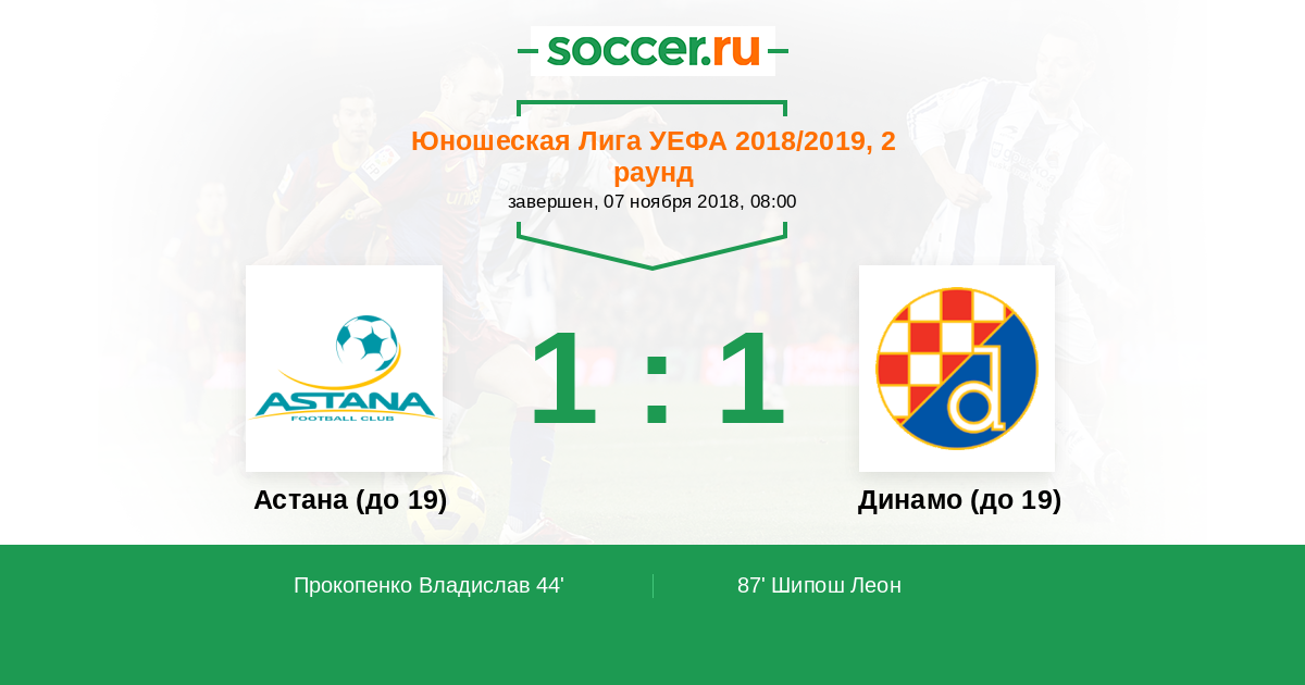 Протокол матча Астана (до 19) против Динамо (до 19)