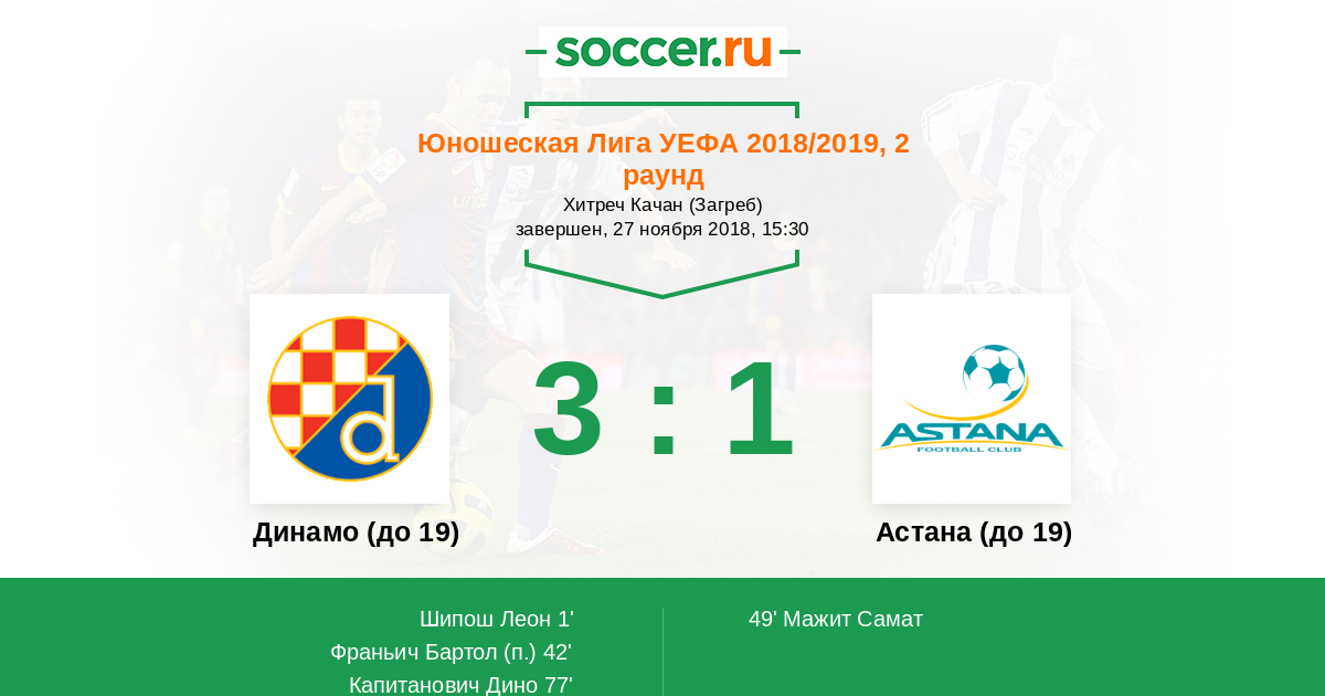 Протокол матча Динамо (до 19) против Астана (до 19)