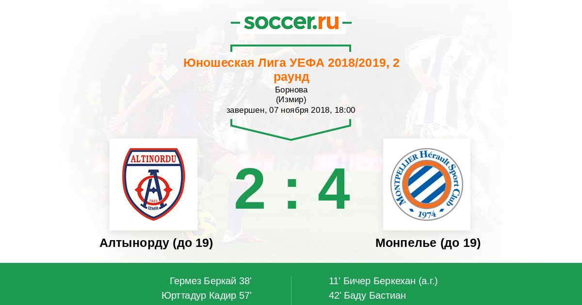 Протокол матча Алтынорду (до 19) против Монпелье (до 19)