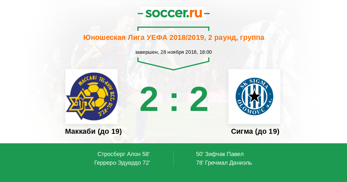 Протокол матча Маккаби (до 19) против Сигма (до 19)