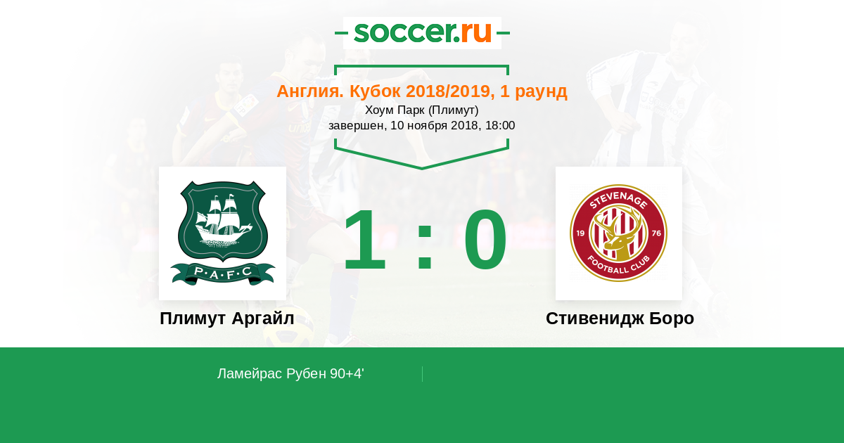 Протокол матча Плимут Аргайл против Стивенидж Боро