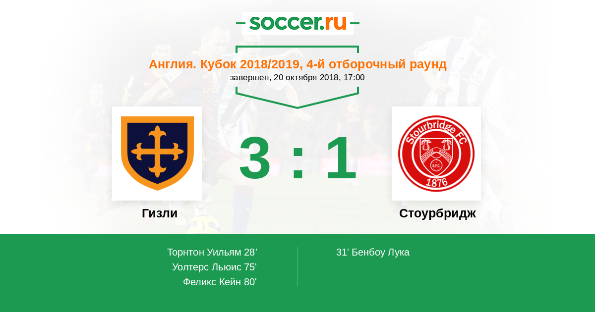 Протокол матча Гизли против Стоурбридж