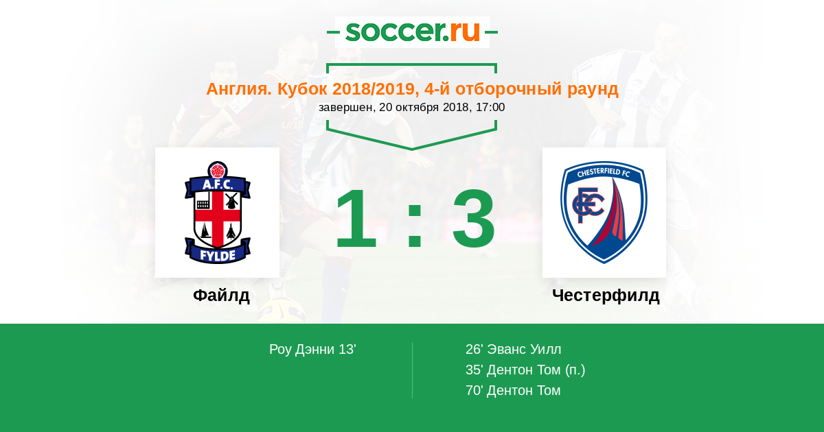 Протокол матча Файлд против Честерфилд