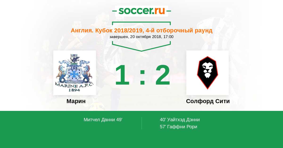 Протокол матча Марин против Солфорд Сити