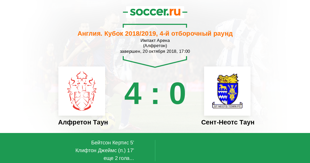 Протокол матча Алфретон Таун против Сент-Неотс Таун