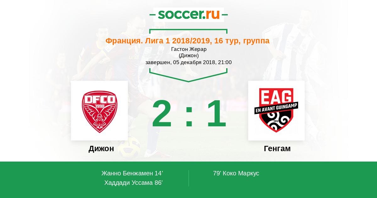 Протокол матча Дижон против Генгам
