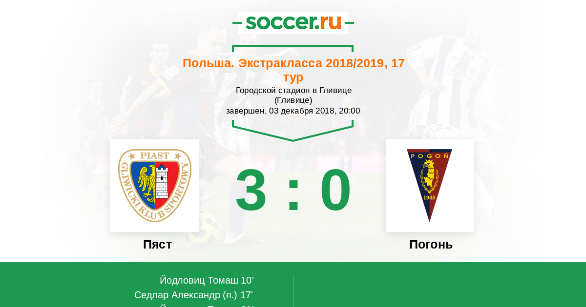 Протокол матча Пяст против Погонь
