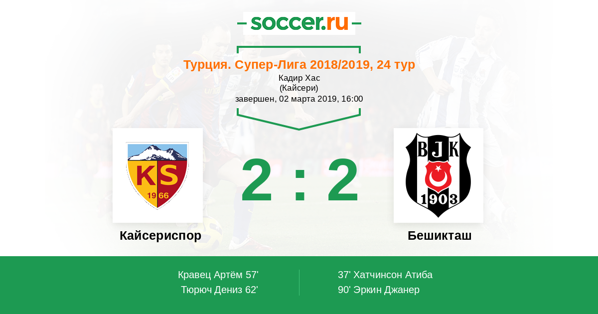 Протокол матча Кайсериспор против Бешикташ