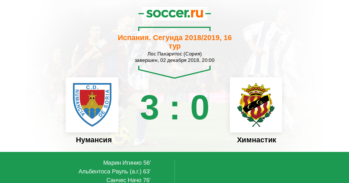 56' (1:0) Марин Игинио (9) (Медина Унаи (17))