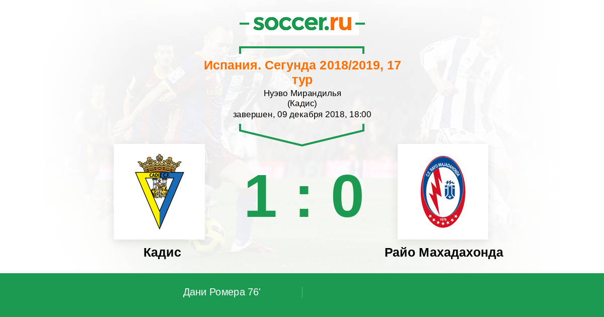 76' (1:0) Дани Ромера (9) (Вальехо Мануэль (29))