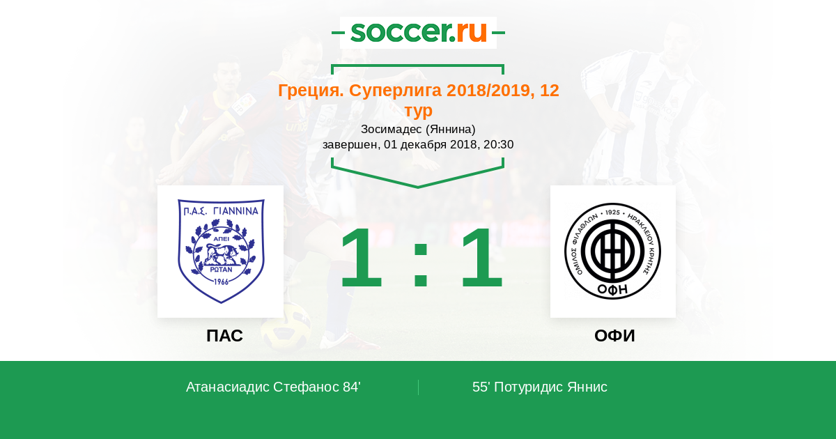 Протокол матча ПАС против ОФИ