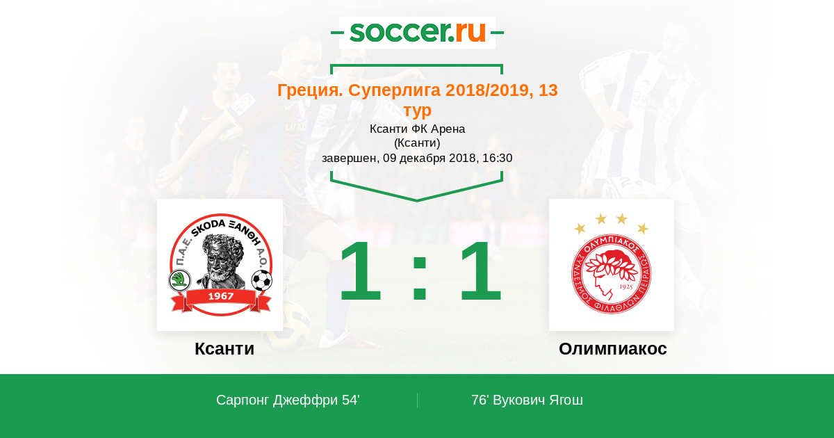 Протокол матча Ксанти против Олимпиакос