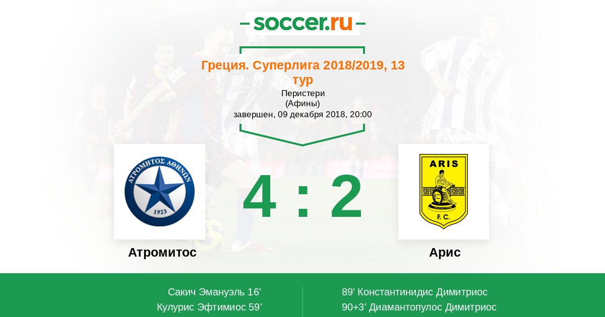 Протокол матча Атромитос против Арис