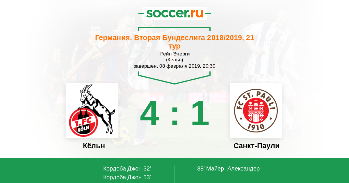 Протокол матча Кёльн против Санкт-Паули