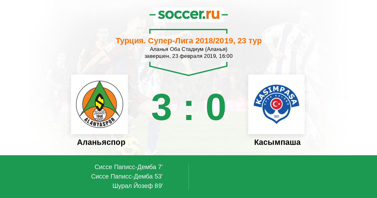 53' (2:0) Сиссе Паписс-Демба (18) (Байано (14))