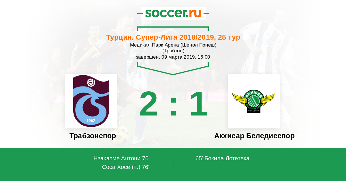Протокол матча Трабзонспор против Акхисар Беледиеспор
