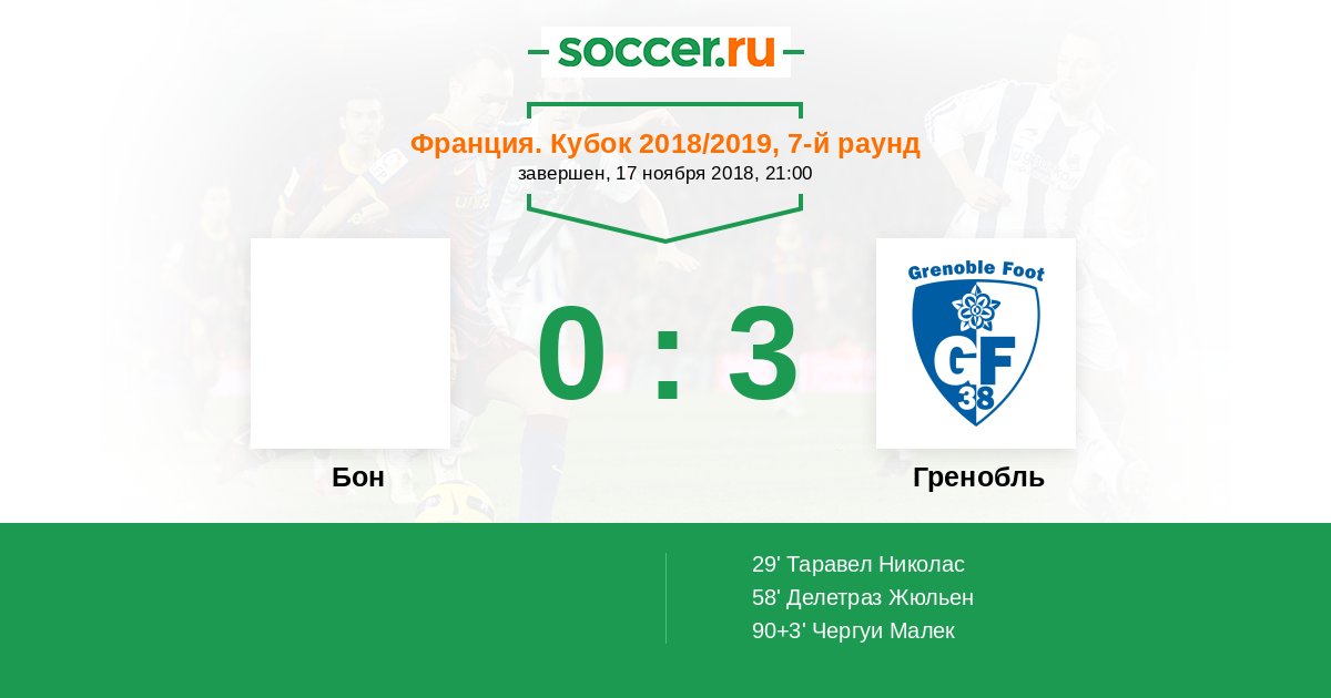 Протокол матча Бон против Гренобль
