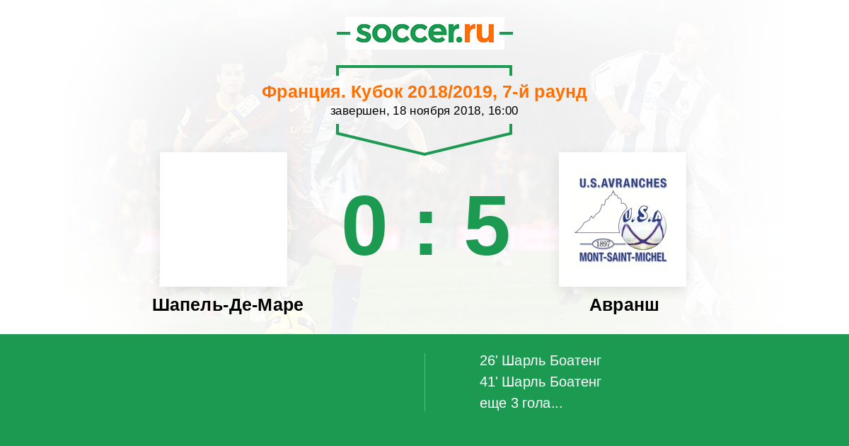 Протокол матча Шапель-Де-Маре против Авранш