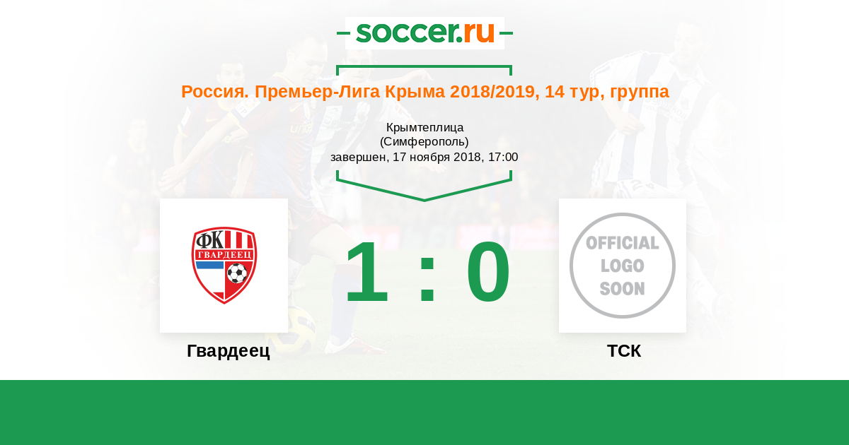 Россия. Премьер-Лига Крыма 26.09.2018 ТСК Логотип футбольный клуб ТСК (Симферополь) 1:0 Логотип футбольный клуб Гвардеец (Аграрное) Гвардеец