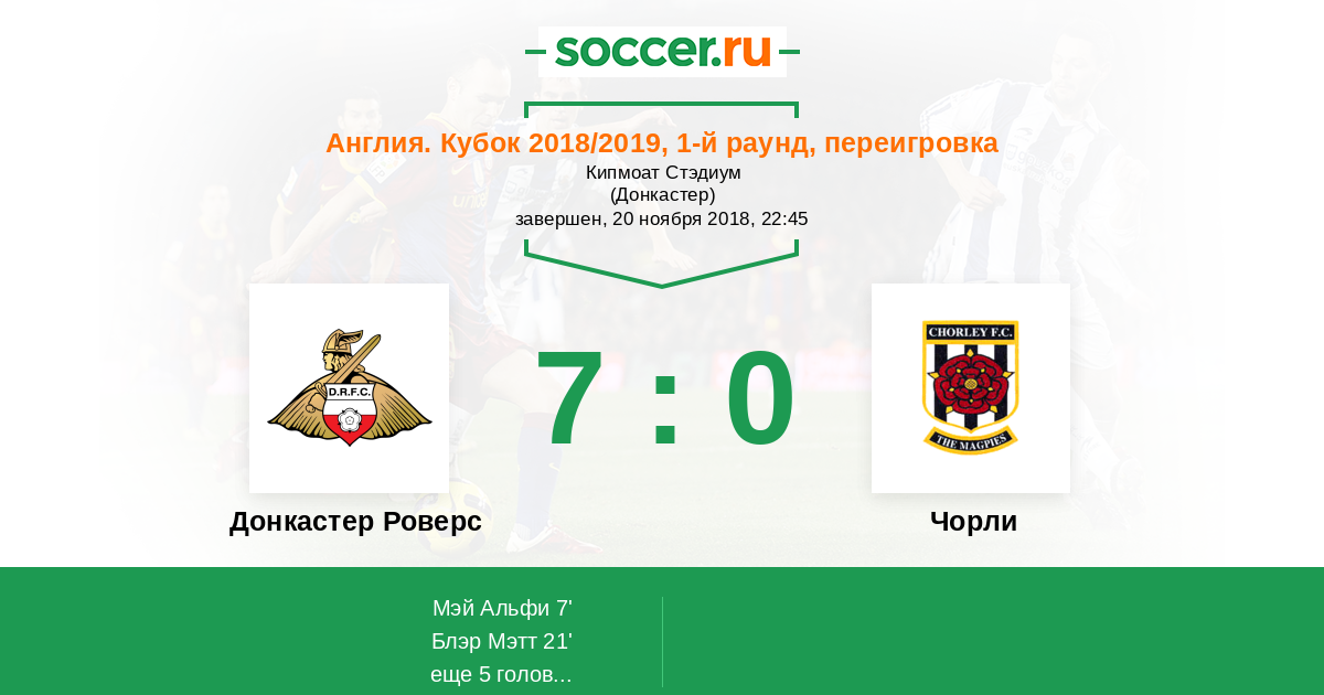 Протокол матча Донкастер Роверс против Чорли