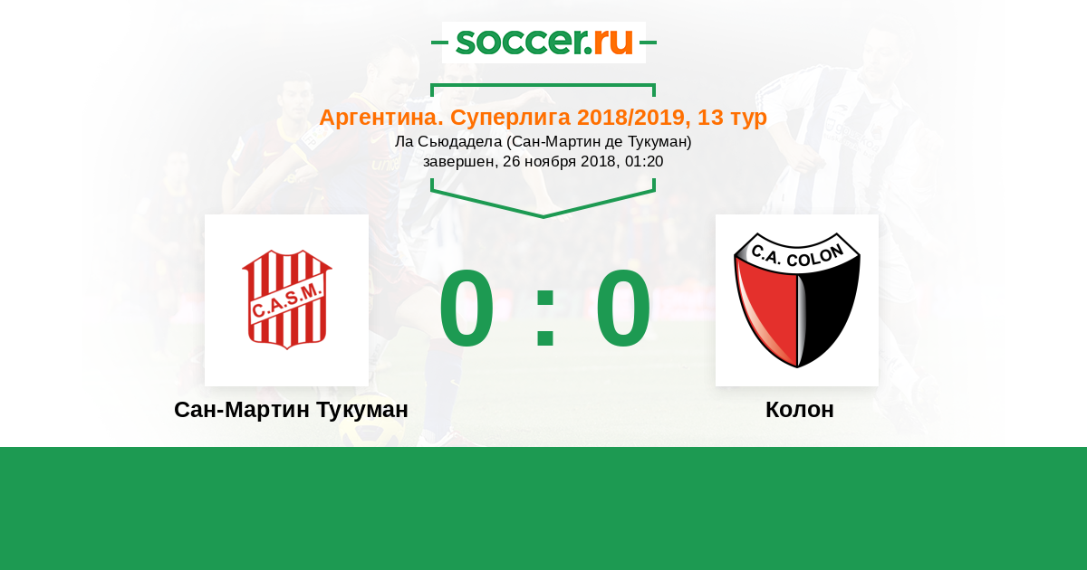 Протокол матча Сан-Мартин Тукуман против Колон