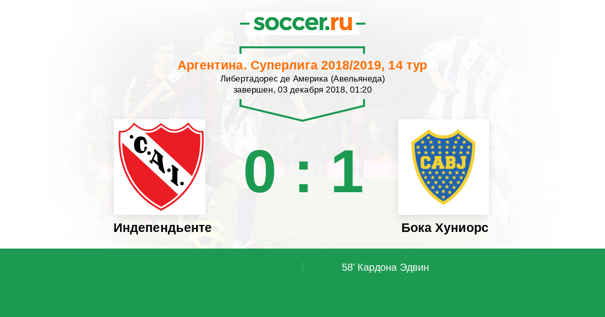 Протокол матча Индепендьенте против Бока Хуниорс
