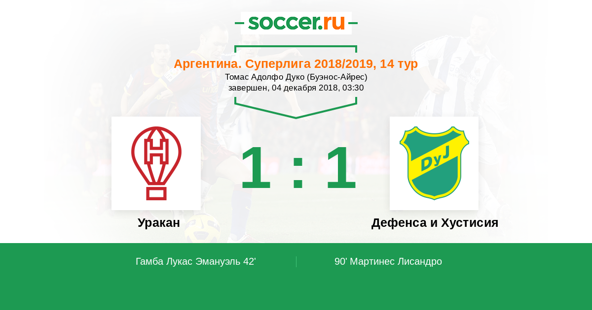 Протокол матча Уракан против Дефенса и Хустисия