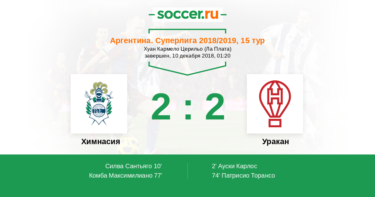 74' (1:2) Патрисио Торансо (18) (Гамба Лукас Эмануэль (21))