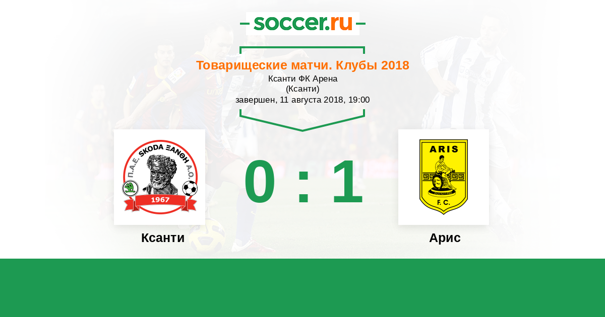 Греция. Суперлига 31.01.2019 Ксанти Логотип футбольный клуб Ксанти 0:1 Логотип футбольный клуб Арис (Салоники) Арис