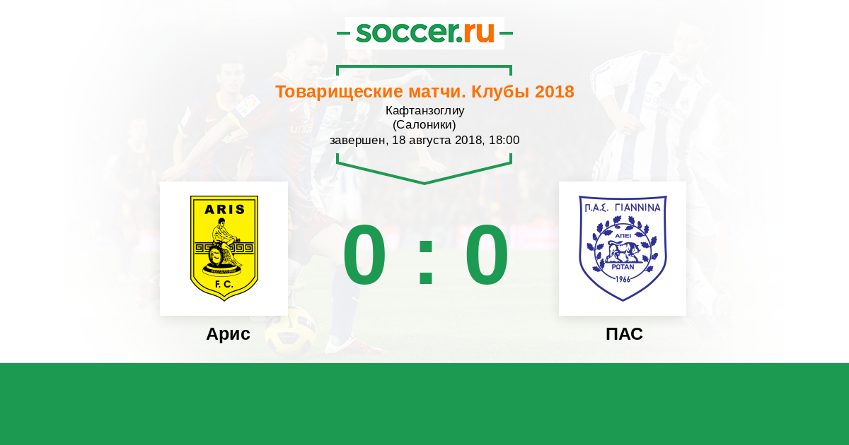 Греция. Суперлига 22.09.2018 ПАС Логотип футбольный клуб ПАС (Яннина) 1:0 Логотип футбольный клуб Арис (Салоники) Арис