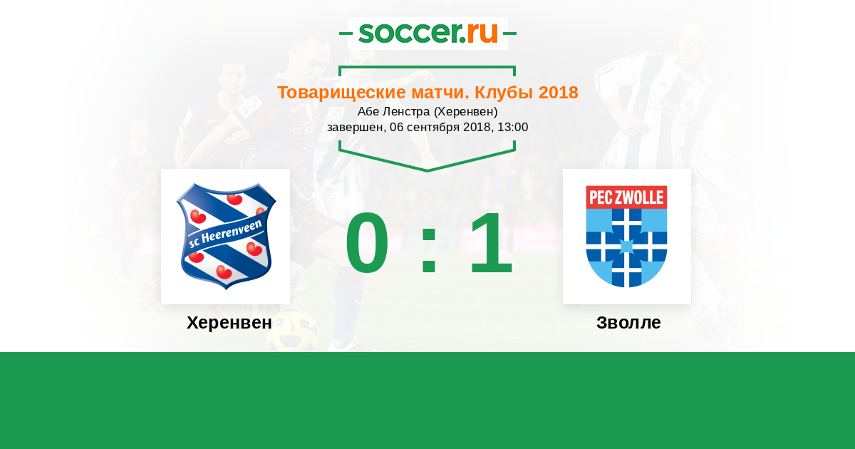 Нидерланды. Эредивизи 10.08.2018 Зволле Логотип футбольный клуб Зволле 2:3 Логотип футбольный клуб Херенвен Херенвен