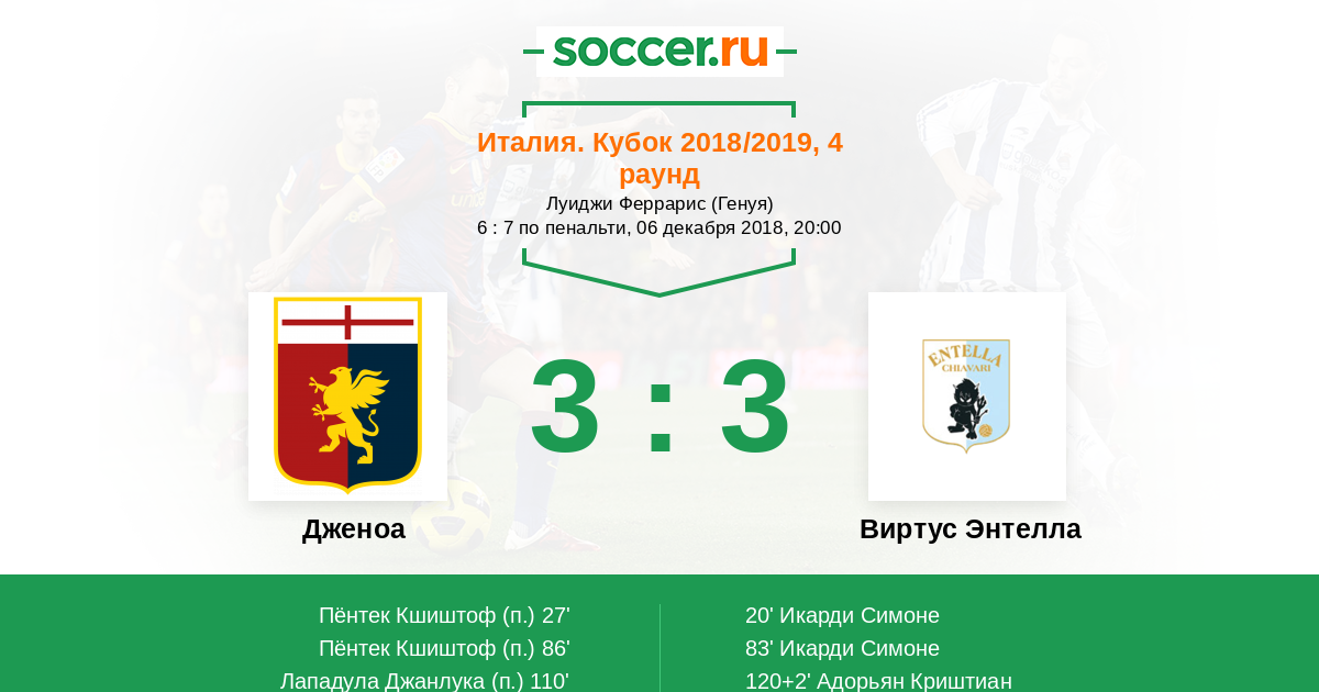 Протокол матча Дженоа против Виртус Энтелла