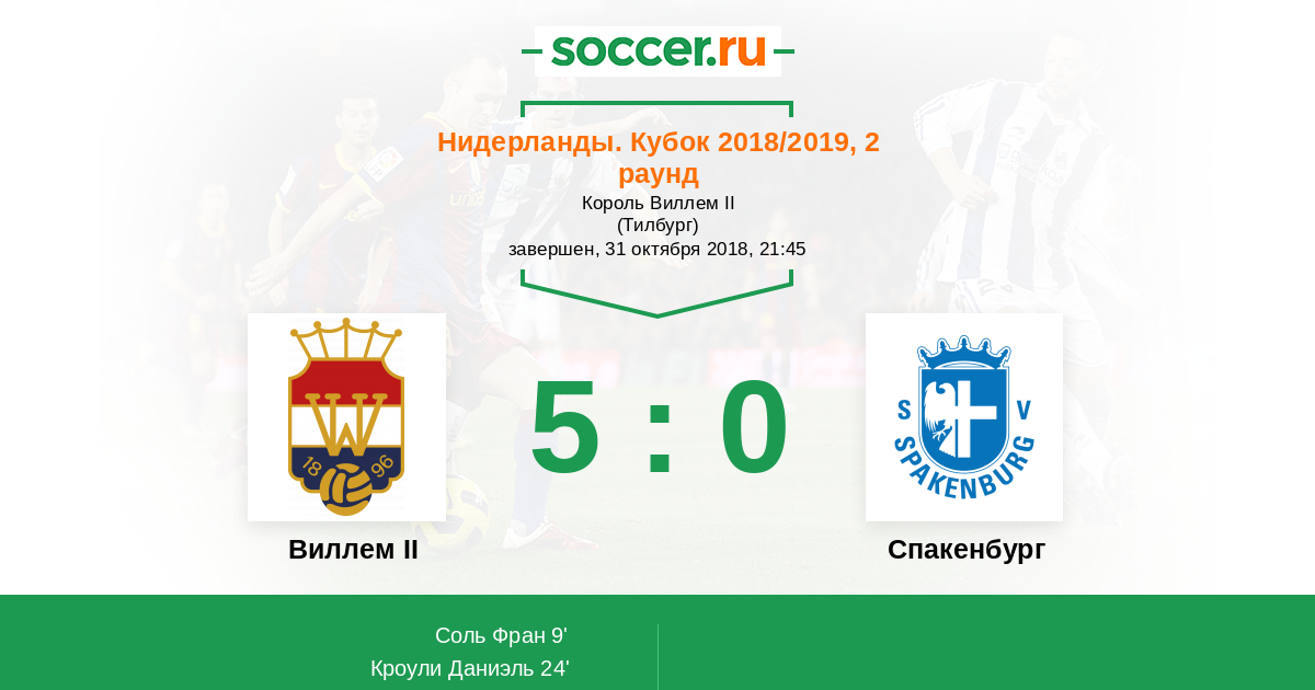 Протокол матча Виллем II против Спакенбург