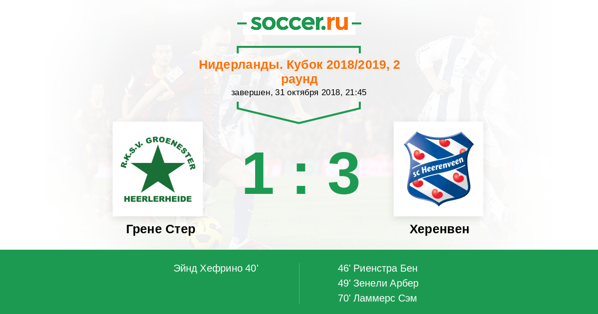 Протокол матча Грене Стер против Херенвен