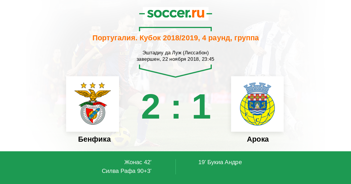 Протокол матча Бенфика против Арока