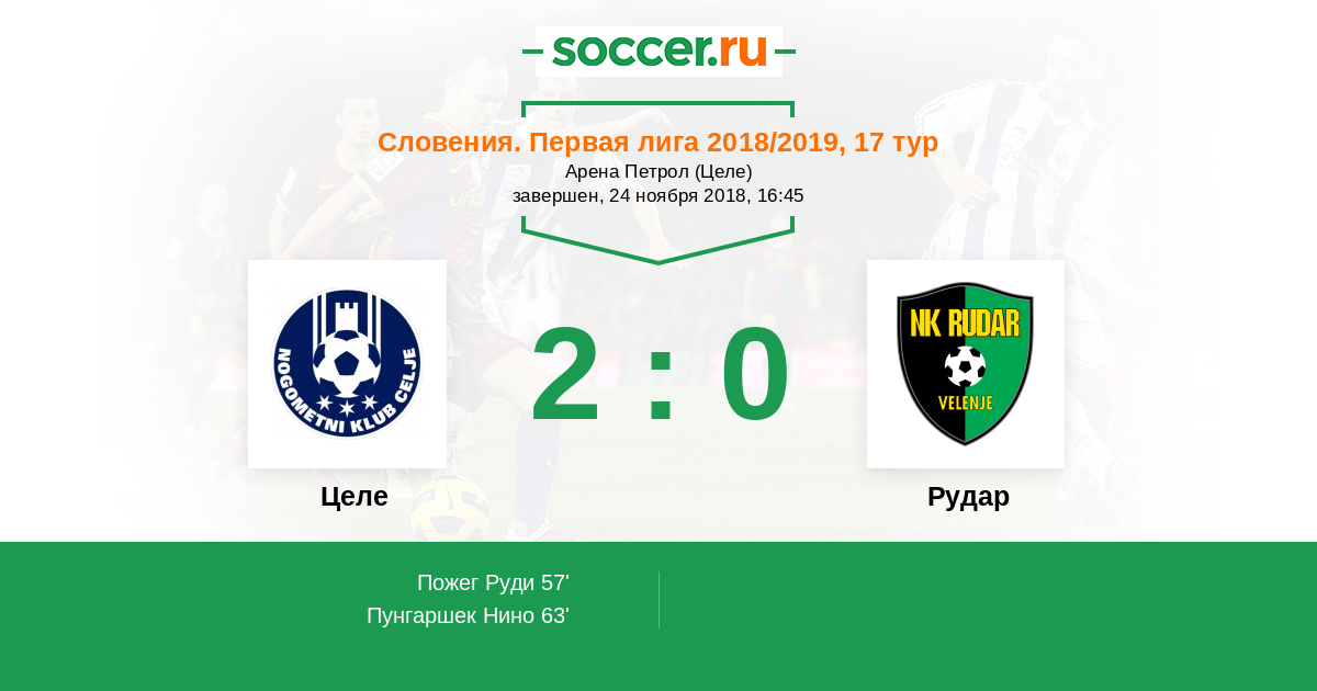 Протокол матча Целе против Рудар