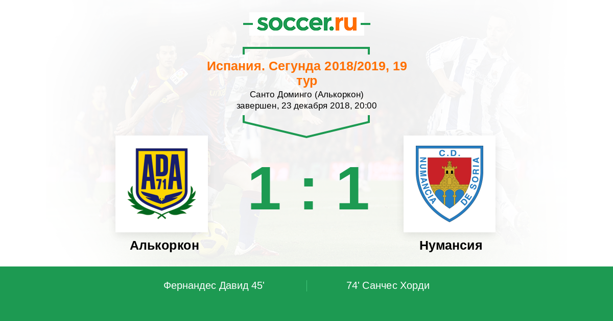 Протокол матча Алькоркон против Нумансия