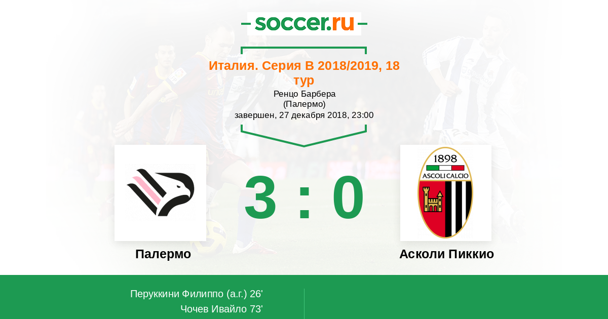 Протокол матча Палермо против Асколи Пиккио