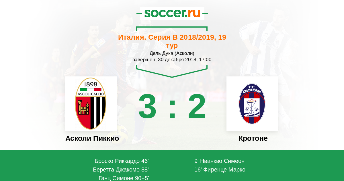 Гол90+5' (3:2) Ганц Симоне (9) (Лавероне Лоренцо (37))