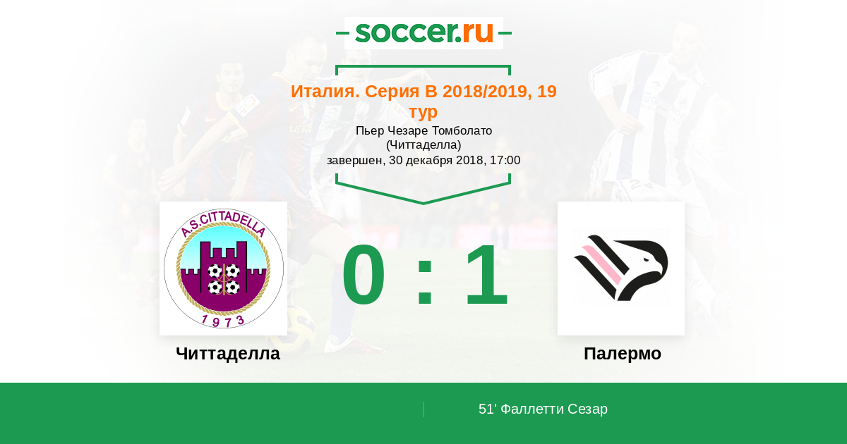 Протокол матча Читтаделла против Палермо