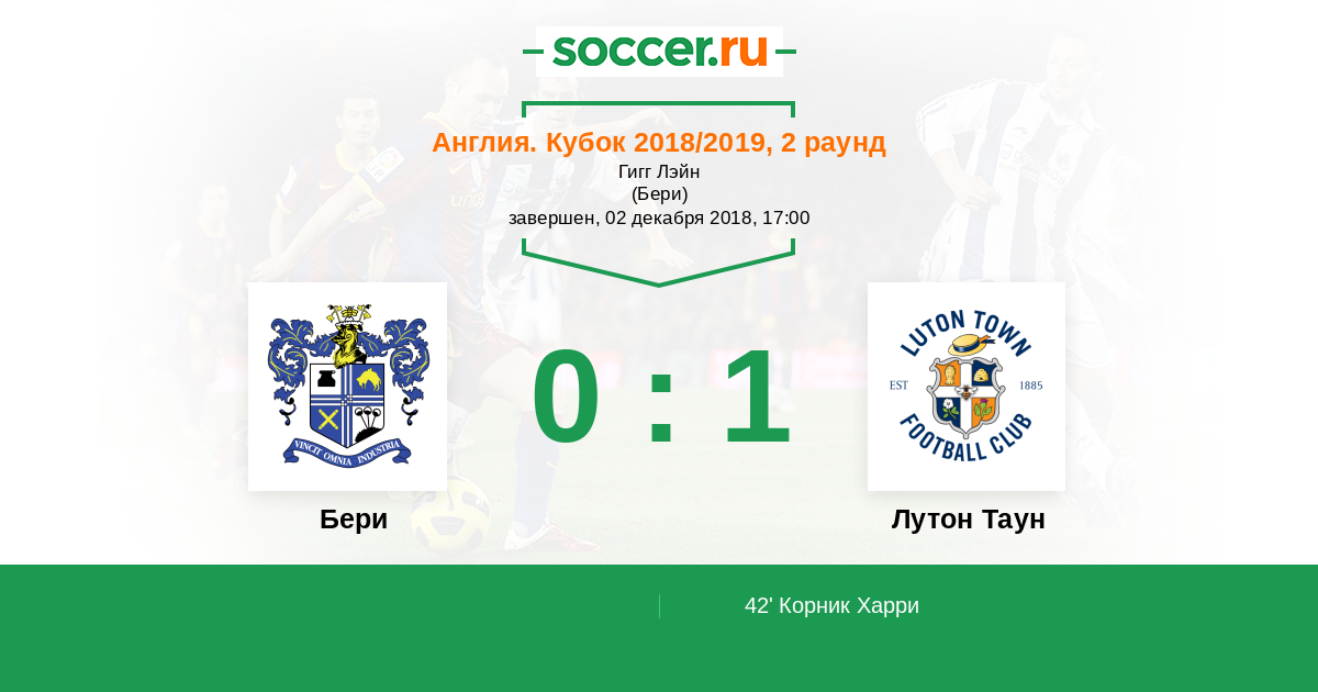 42' (0:1) Корник Харри (14) (Коллинз Джеймс (19))