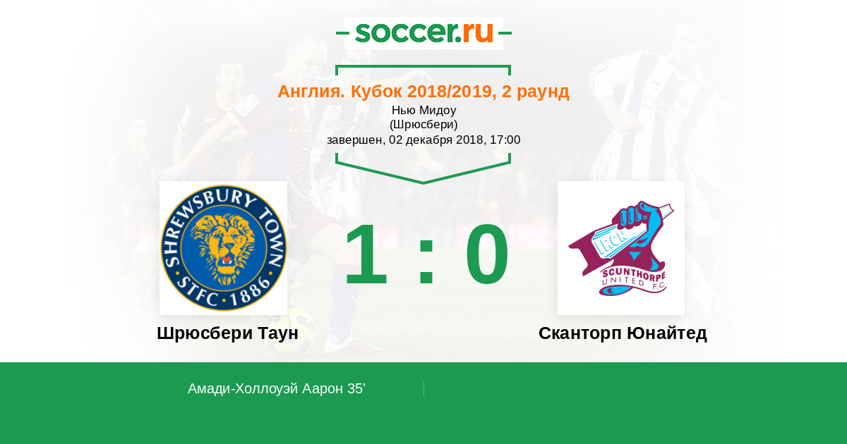 Протокол матча Шрюсбери Таун против Сканторп Юнайтед