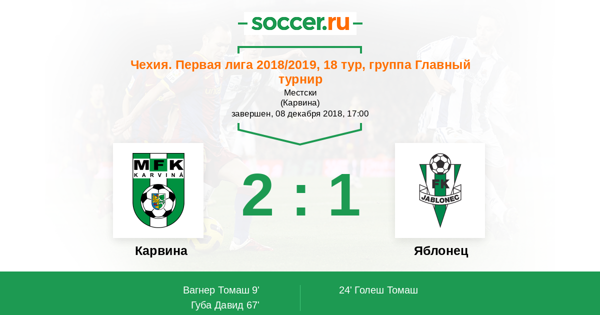 9' (1:0) Вагнер Томаш (15)