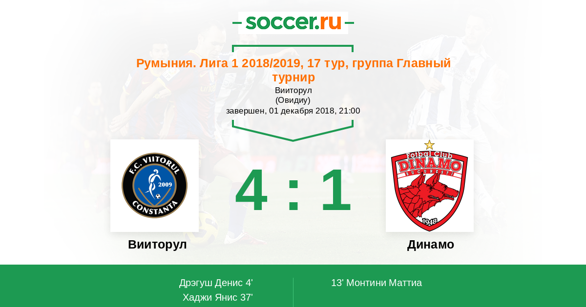 Протокол матча Вииторул против Динамо