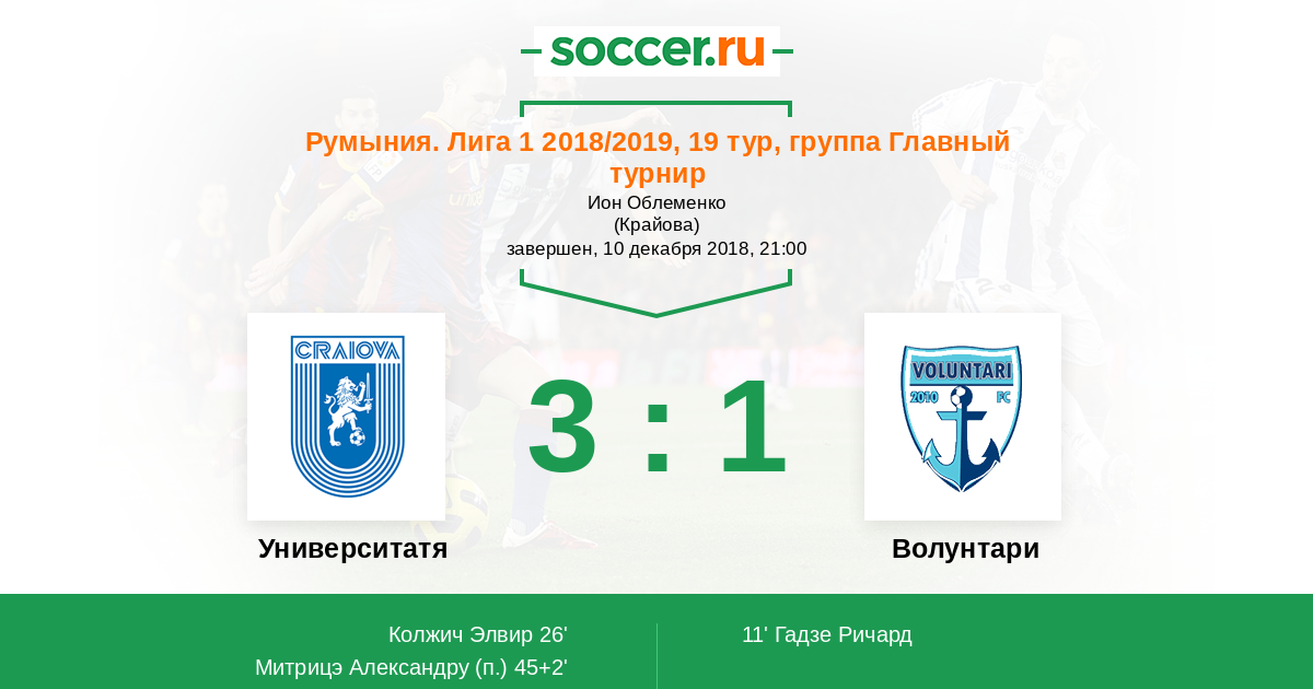 Протокол матча Университатя Крайова против Волунтари