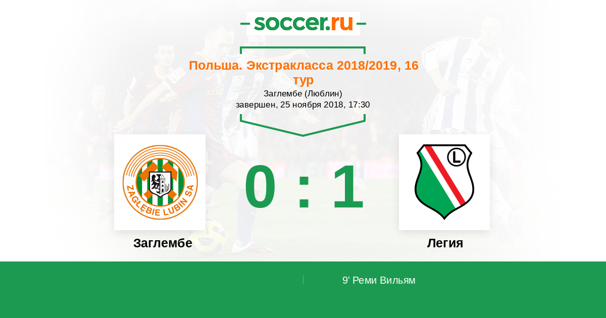 Протокол матча Заглембе против Легия