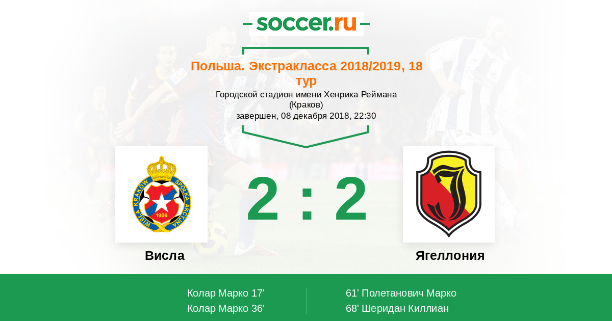 Протокол матча Висла против Ягеллония
