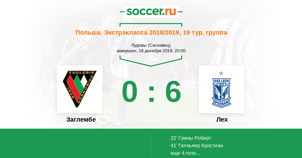 Протокол матча Заглембе против Лех