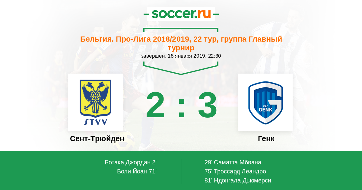 Протокол матча Сент-Трюйден против Генк
